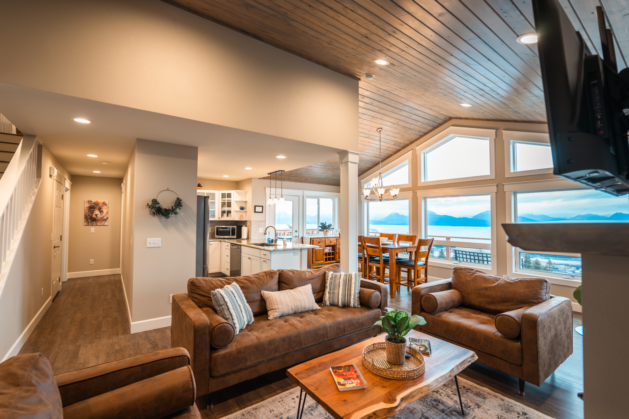 Imagine waking up in a cozy Alaskan cabin, sunlight pouring in through wide windows that frame sweeping views of Kachemak Bay. You stretch, breathe in the fresh ocean air, and start your day with a hot cup of coffee on a private deck overlooking the Kenai Mountains. This is just the beginning of a day at Baycrest Lodge in Homer, Alaska.
